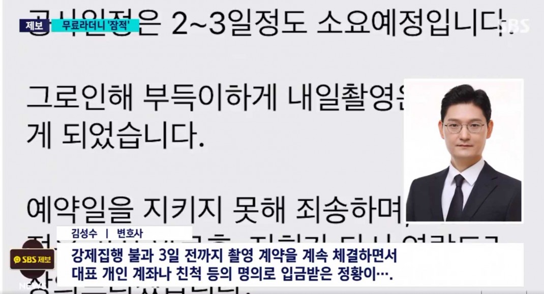 ..산후조리원과 제휴하고 있다는 촬영업체와 아기 사진을 촬영하겠다고 계약했는데, 갑자기 업체가 사라졌다..(중략)[김성수/변호사 : 강제집행 불과 3일 전까지 촬영 계약을 계속 체결하면서 대표 개인 계좌나 친척 등의 명의로 입금받은 정황이….](후략)